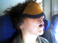 Here we see Shaula on the plane synchronizing her sleep schedule with GMT. I can’t sleep. Fortunately I have my cell-phone camera and an unwitting model to keep me occupied.